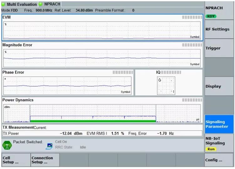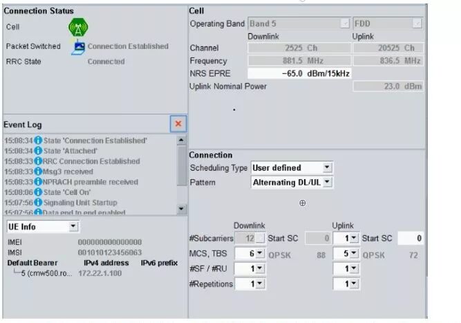 通過儀表的用戶界面和實(shí)測(cè)結(jié)果可以看到,CMW500支持設(shè)定NB-IoT基站的基礎(chǔ)參數(shù),主要包括: