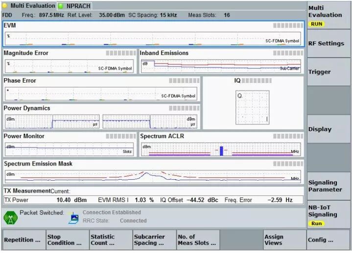 4) 可以根據(jù)NPUSCH信道觸發(fā)測(cè)量,測(cè)試更精準(zhǔn);不僅可以給出單純的數(shù)值形式結(jié)果,還可提供豐富的圖形結(jié)果,信息量豐富